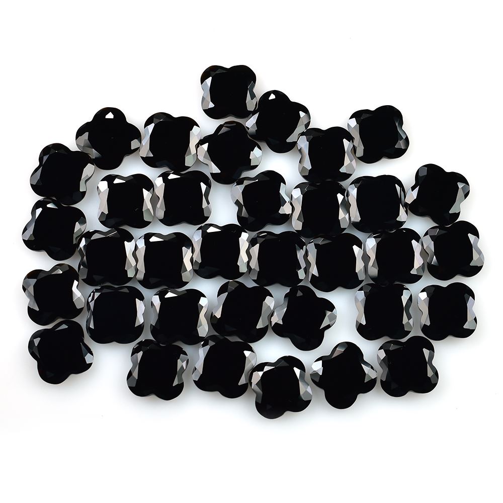 BLACK ONYX BOTH SIDE TABLE CUT FLOWER 4 LEAF (OPAQUE BLACK) 12.00X12.00 MM 3.54 Cts.