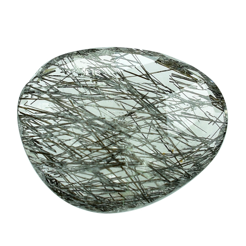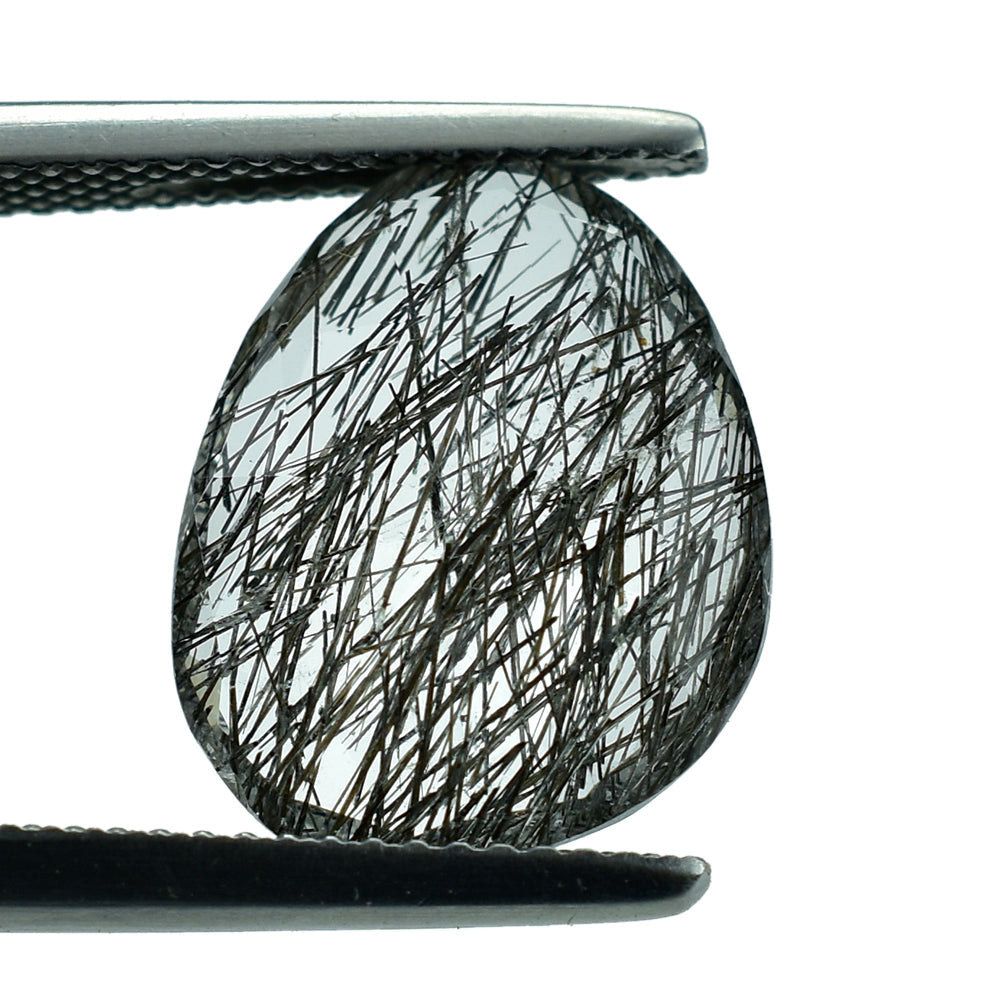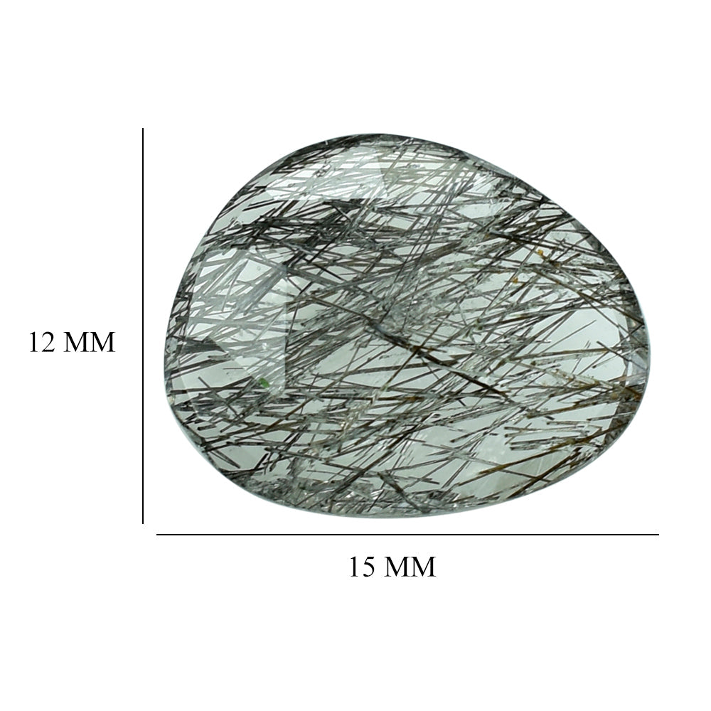 BLACK RUTILE QUARTZ MANY RUTILE (SI) CUT PEARISH 15.00X12.00 MM 5.56 Cts.