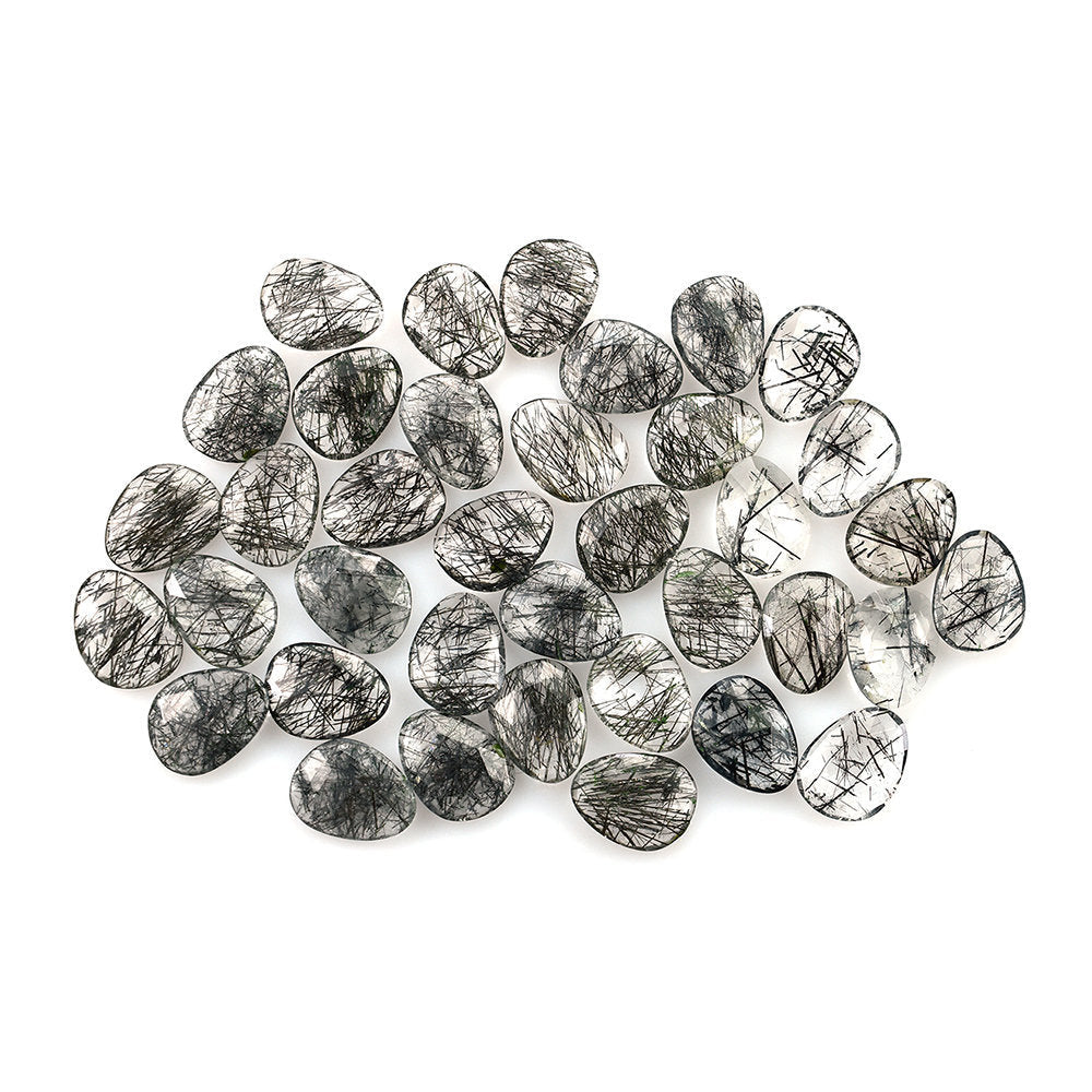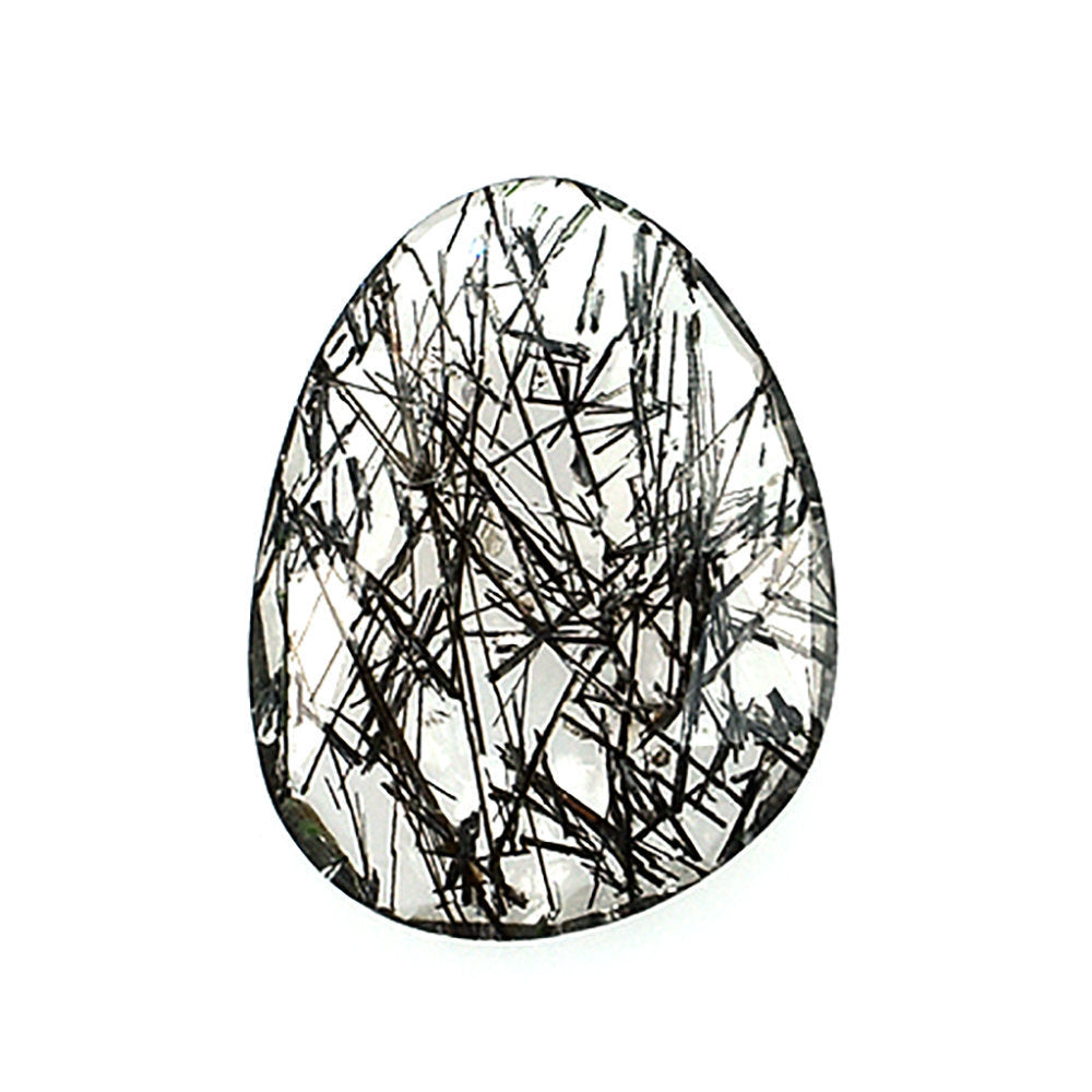 BLACK RUTILE QUARTZ ROSE CUT BRIOLETTE PEARISH 12.70X9.70MM 2.44 Cts.