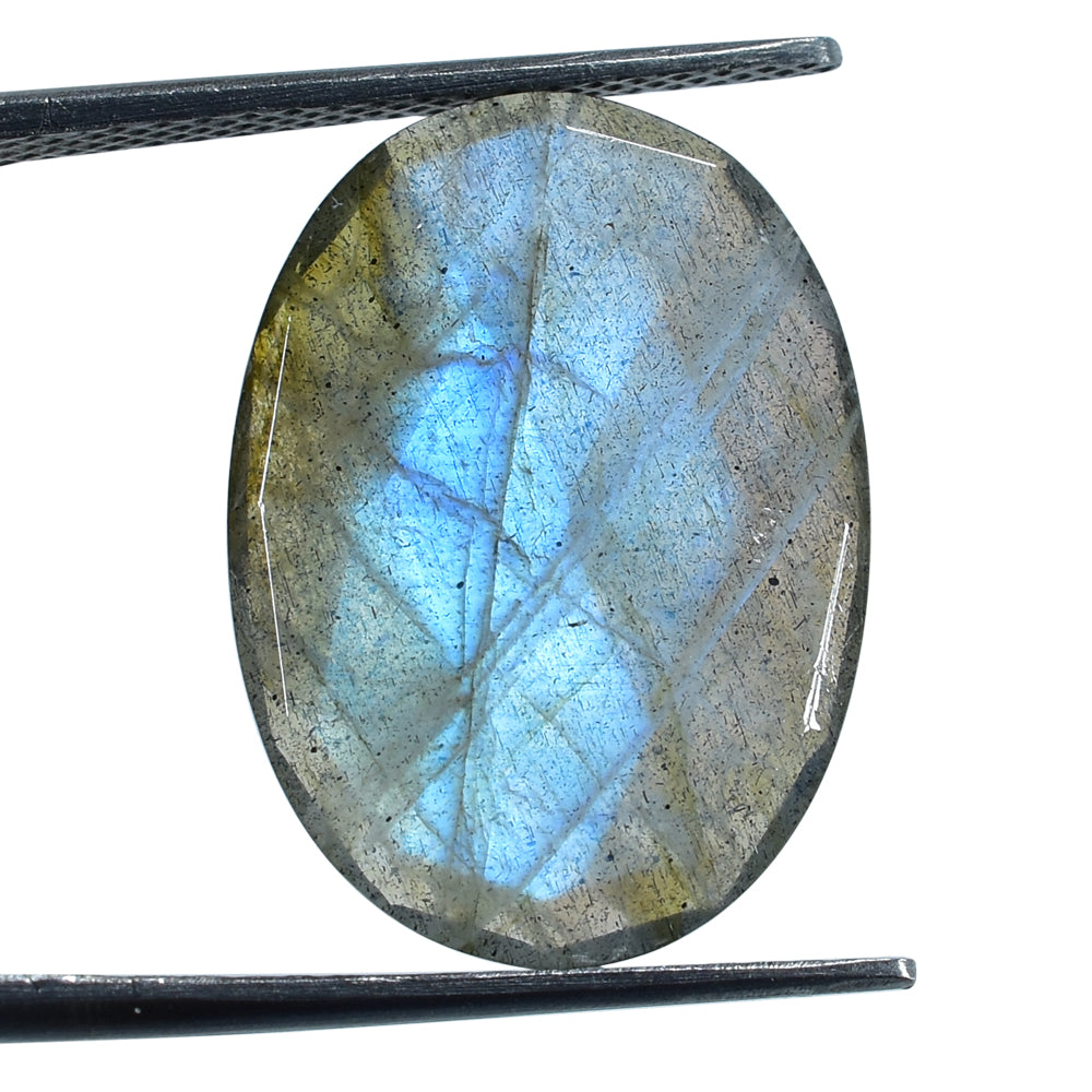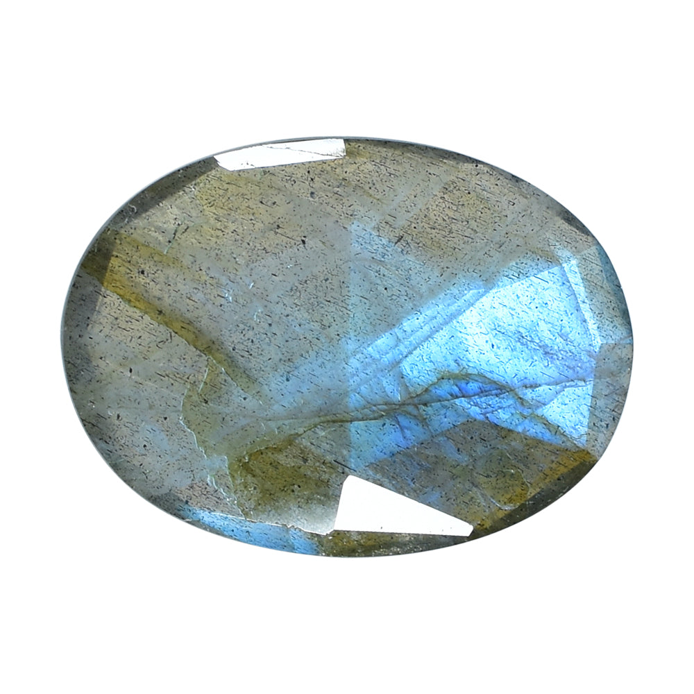 BLUE GREEN LABRADORITE (OPAQUE/MANY BLACK SPOT & CRACK) ROSE CUT BRIOLETTE OVAL 18.00X13.00 MM 6.75 Cts.