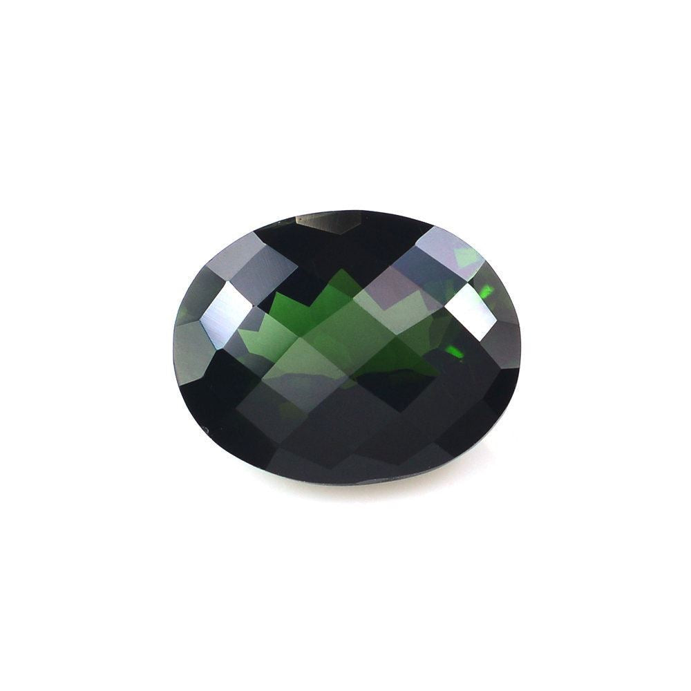 GREEN TOURMALINE CHECKER CUT OVAL (VERY DARK/SI) 10X8MM 2.65 Cts.
