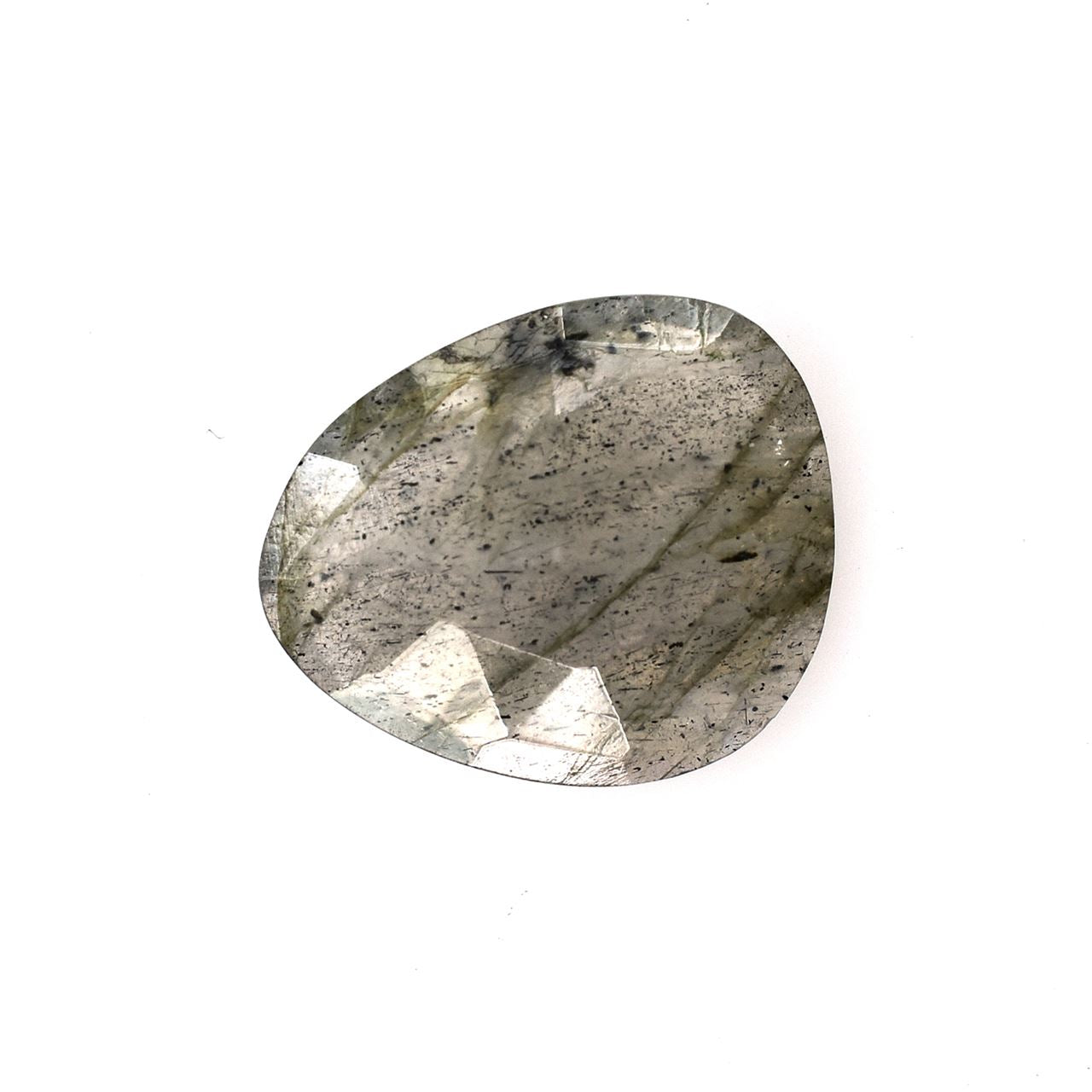 LABRADORITE ROSE CUT BRIOLETTE TRILLIANISH (BLUE GREEN POWER)(SOME BLACK SPOTS CRACKS) 13.00X11.00 MM 3.36 CTS