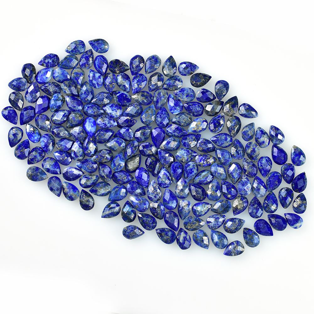 LAPIS LAZULI CHECKER CUT BRIOLETTE PEAR (3RD) (MANY PYRITYE&WHITE SPOTS) 6.00X4.00 MM 0.46 CTS