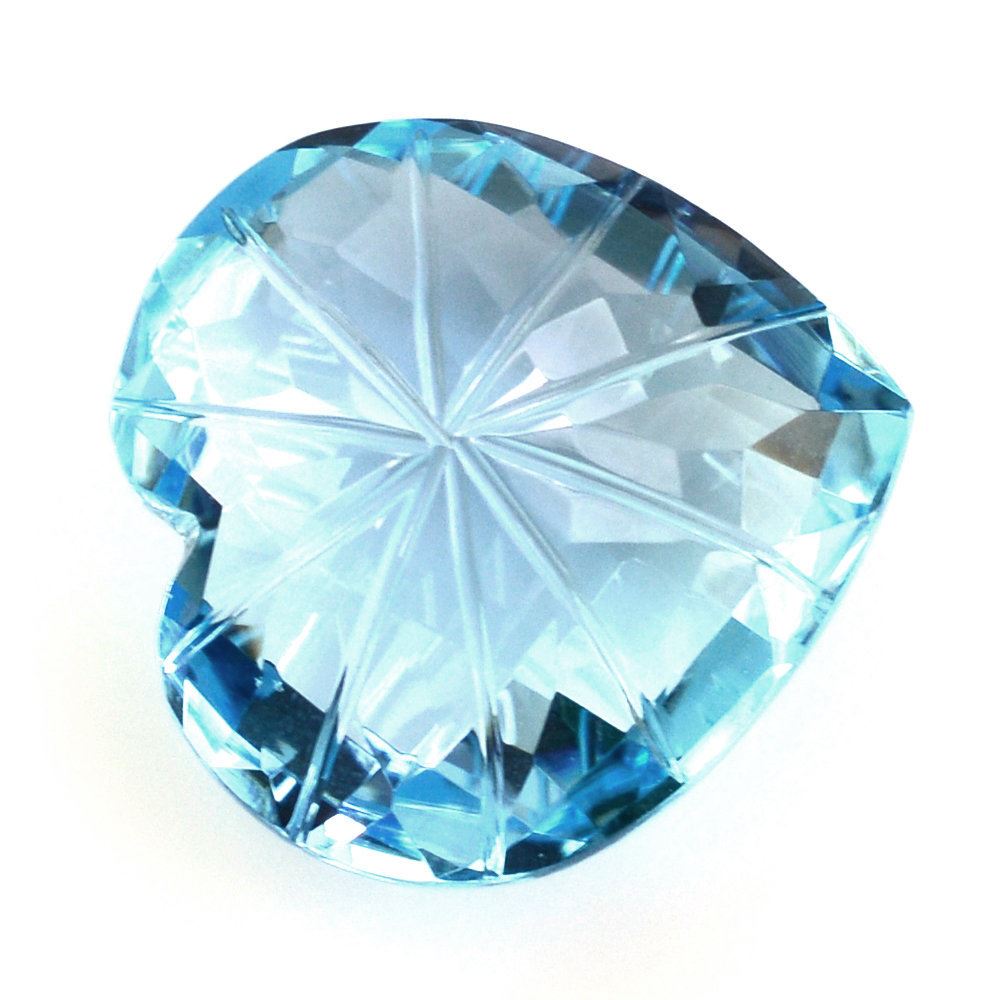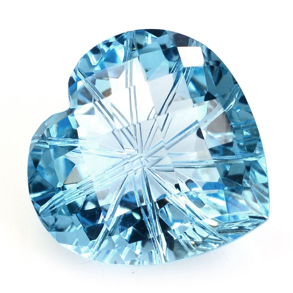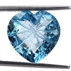 SKY BLUE TOPAZ CHECKER CUT ON TOP BACK LAZER CUT HEART 15MM 13.20 Cts.