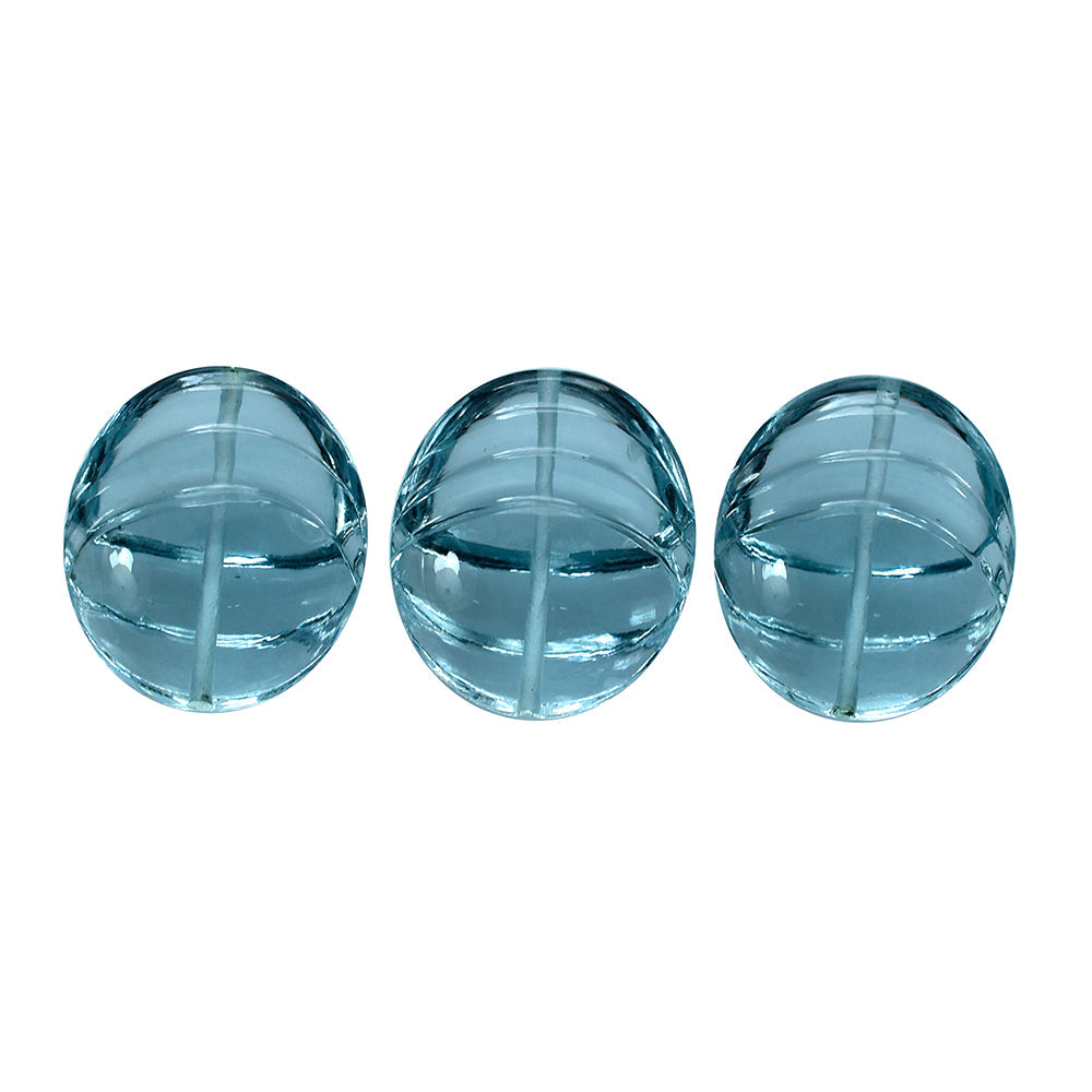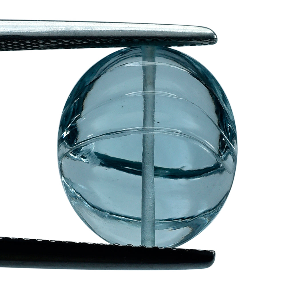 SKY BLUE TOPAZ LENTIL OVAL WITH CARVING (FULL DRILL) (DES#26) 14X12MM 7.69 Cts.