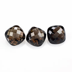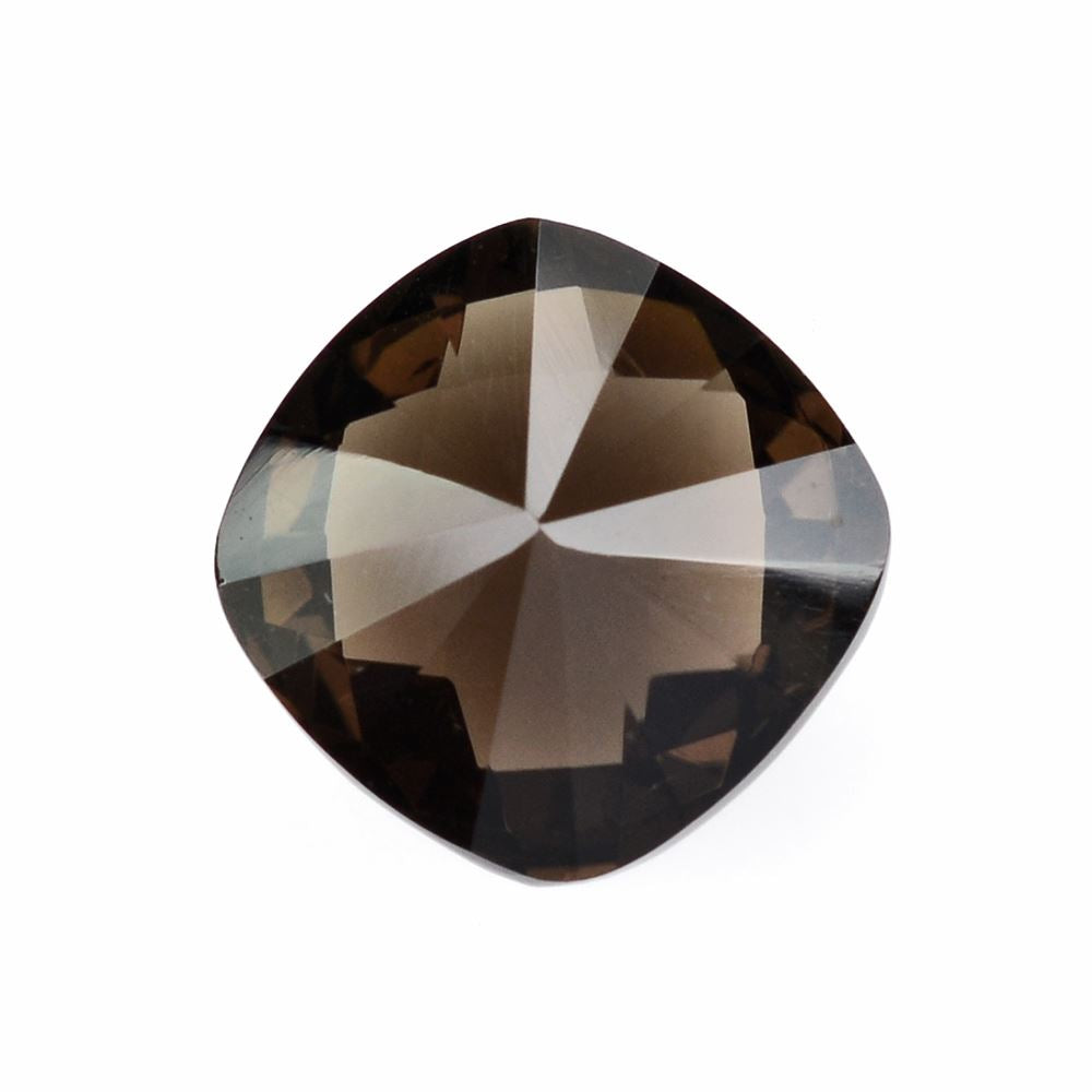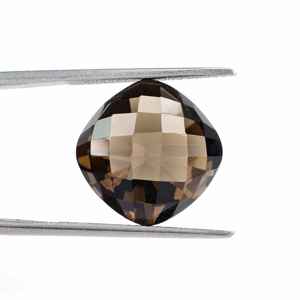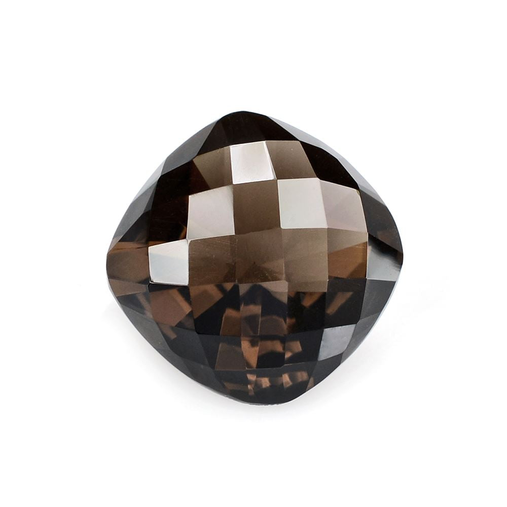 SMOKY QUARTZ CHECKER CUT ON TOP DIAMOND CUT BACK CUSHION 14MM 10.76 Cts.